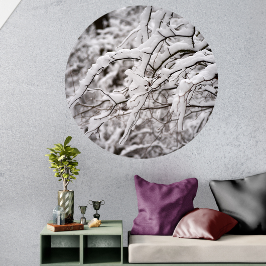 Beleef de intieme charme van de winter met onze muurcirkel Betoverende Winterse Takken . Elke tak, prachtig en grondig bedekt met zuivere witte sneeuw, toont de kunstzinnigheid van de natuur in zijn puurste vorm.