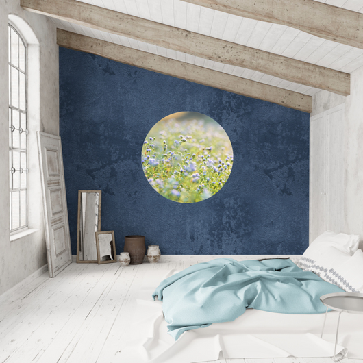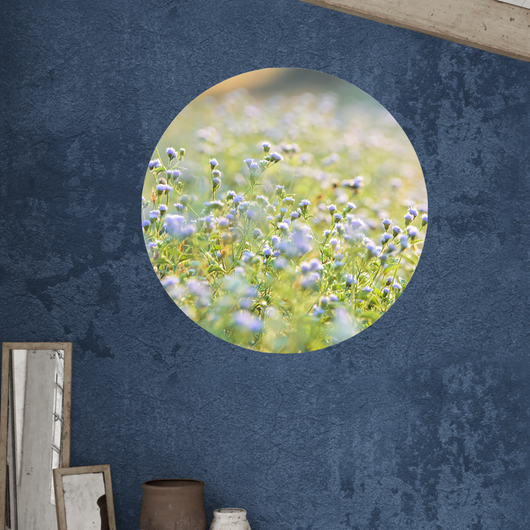 Transformeer je ruimte in een oase van kalmte met onze muurcirkel Blauwe Weidepracht. De sierlijke witblauwe bloemetjes, gevangen in een perfecte cirkel, bieden een uniek perspectief op de schoonheid van de natuur. Het zachte licht dat over het veld valt, creëert een gevoel van vrede en sereniteit.