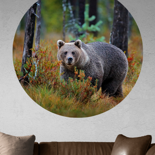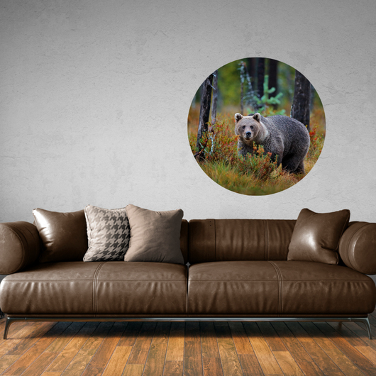 Muurcirkel Bruine Beer in Herfstbos