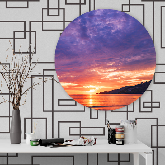 Laat de serene schoonheid van de ondergaande zon uw ruimte omarmen met onze Hemelse Reflectie muurcirkel. De harmonieuze balans tussen hemel en water creëert een betoverend panorama dat uw muur tot leven brengt. Het subtiele spel van licht en schaduw, vastgelegd in een perfecte cirkel, nodigt uit tot dagdromen en reflectie.
