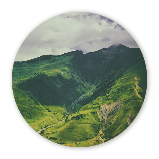 Breng de weelderige landschappen van de Kaukasus direct in uw leefruimte met onze Kaukasische Groenpracht muurcirkel. Deze artistieke weergave van de ongerepte natuur brengt de ongeëvenaarde schoonheid van de Georgische wildernis bij u thuis. De cirkelvormige vorm accentueert de eeuwigheid en perfectie van het landschap, waarbij elk detail van de groene bergen tot leven komt.
