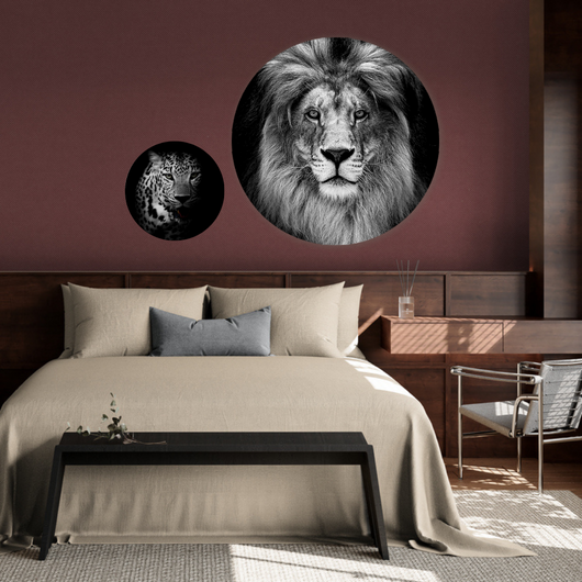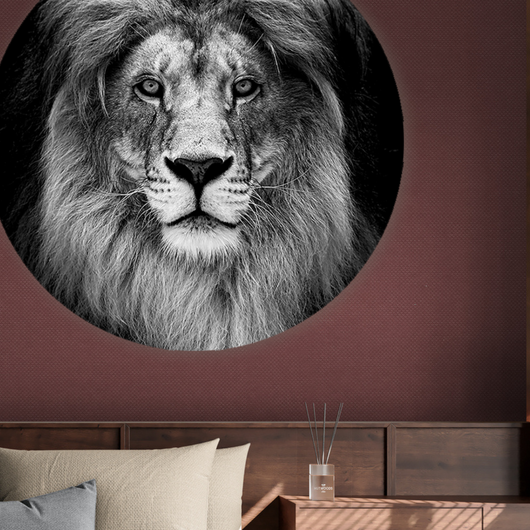 Breng een symbool van kracht en gratie in uw interieur met de Koninklijke Leeuw muurcirkel. Deze muurdecoratie is een ode aan de prachtige uitstraling van de leeuw. De leeuw, in een stijlvol zwart-wit palet, kijkt trots de wereld in, zijn ogen vol wijsheid en zijn manen een toonbeeld van onbeperkte schoonheid.