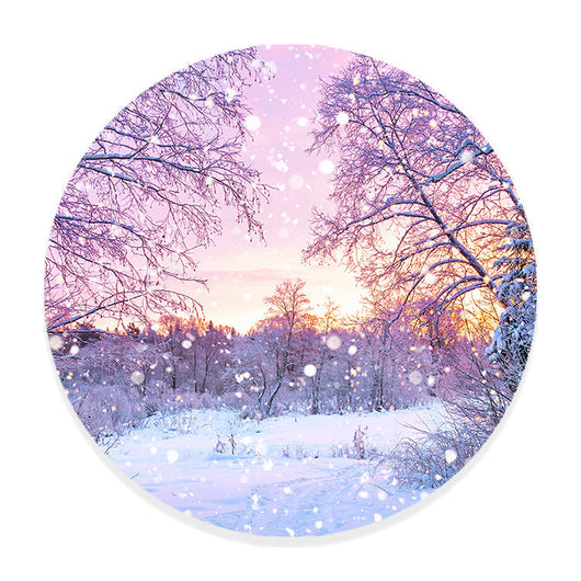 Stap in de rustgevende wereld met onze muurcirkel Prachtige Winterochtend. Deze ronde vorm vangt de magie van de overgang van de nachtelijke schaduwen naar het eerste licht in een winters bos. Elk detail, van de met sneeuw bedekte takken tot de vroege zonnestralen, wordt in deze cirkel gevangen.