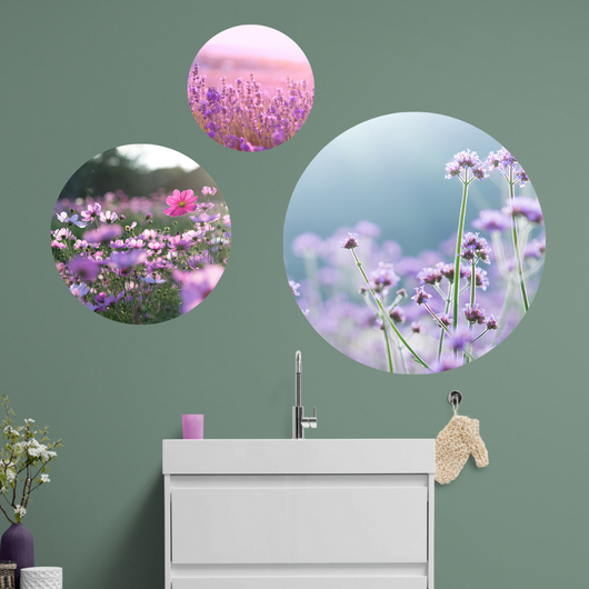 Ontdek de mystieke charme van de Sierlijke Paarse Magie muurcirkel. De zachte paarse bloesems spelen de hoofdrol, gevangen in een perfecte cirkel die harmonie en evenwicht uitstraalt. Dit stuk voegt direct een vleugje magie toe aan elke ruimte, of het nu je woonkamer, slaapkamer of kantoor is.