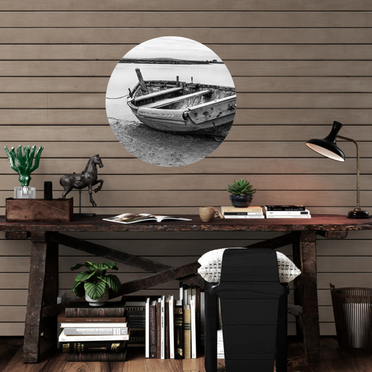 Laat de rust van de natuur je muren sieren met deze Vergeten Aanlegplaats muurcirkel. De innerlijke schoonheid van een verlaten boot, vastgeketend aan een paal, brengt een gevoel van stilte in je ruimte.