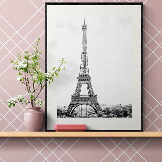 Zonder de afleiding van kleur komen de contouren, lijnen en het karakter van de Eiffeltoren perfect tot hun recht. Het is een beeld dat zowel kracht als finesse uitstraalt, de ware geest van Parijs dringt in elke centimeter door.