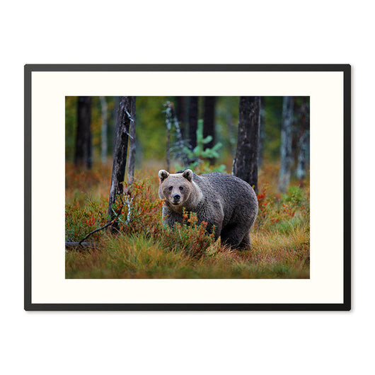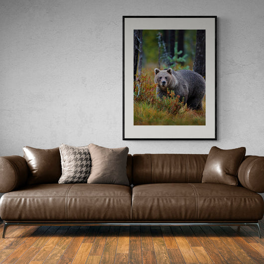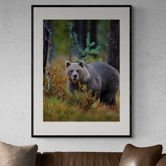 Betover je interieur met onze ingelijste poster Bruine Beer in Herfstbos. Deze levendige afbeelding van een bruin beer omringd door herfstkleuren, is een prachtige toevoegingen aan elk huis.