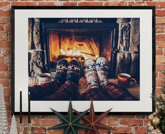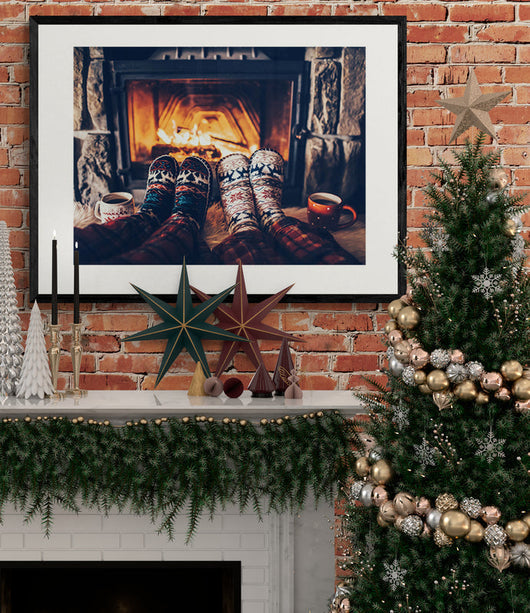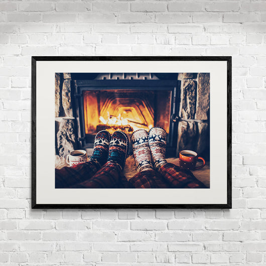 Geniet van de charme van winterse avonden met onze Gezellige Winteravond poster in lijst. Deze afbeelding vangt het ultieme gevoel van warmte en comfort; twee paar voeten, gehuld in kleurrijke sokken, uitgestrekt voor een knetterende haard. Een detail dat niet te missen is zijn de dampende mokken, die de belofte van warmte en zoete momenten inhouden.