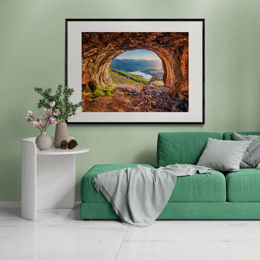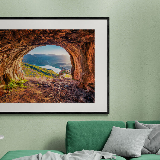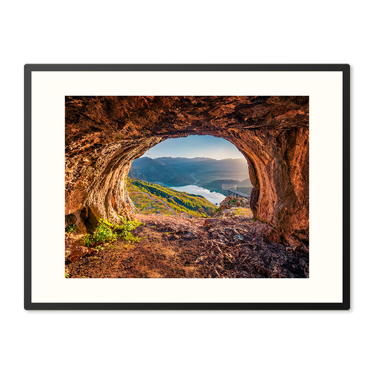 Stel je voor: je staat in de mond van een grot en voor je strekt zich het adembenemende Bovilla Meer uit, een verborgen parel nabij de stad Tirana. Grotuitzicht op Bovilla meer brengt een stukje van Albanië's ongerepte schoonheid direct in jouw woonruimte.