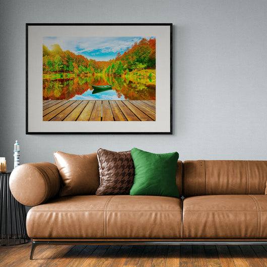 Voor wie op zoek is naar de serene pracht van de herfst, is onze ingelijste poster in Lijst Kleurrijk Herfstmeer de perfecte keuze. De prachtige herfstkleuren worden weerspiegeld in het kalme meer, waardoor een schilderachtig beeld ontstaat die ontspanning oproept.
