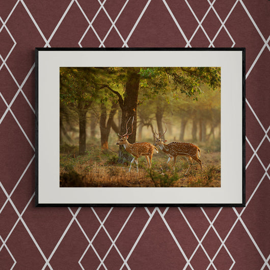 Onze Herten in Herfstbos poster in lijst is niet zomaar een wanddecoratie, het is een eerbetoon aan de wonderen van de natuur. Het beeld van de gevlekte herten is zorgvuldig gekozen om kracht en natuurlijke schoonheid te vieren.