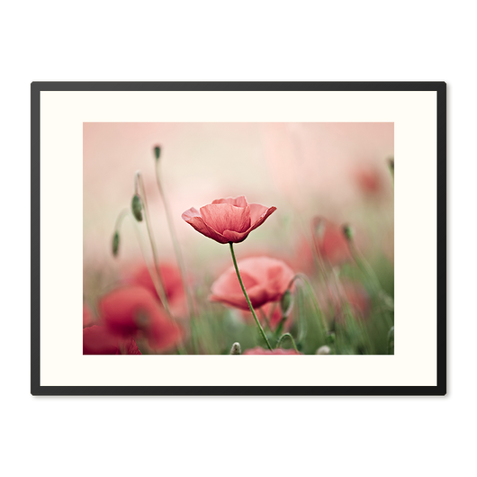Laat je betoveren door de delicate schoonheid van onze Klaproos in Zacht Licht poster. Deze prachtige foto vangt de essentie van een zomerse dag, waarop de klaproos zich van haar beste kant laat zien. Omringd door een dromerig landschap, staat deze bloem fier overeind, badend in het zachte licht van de zon.