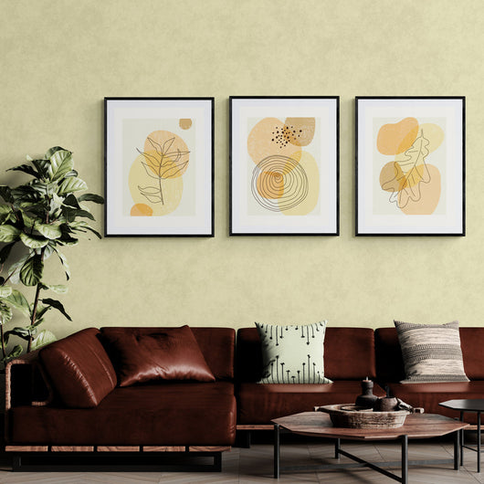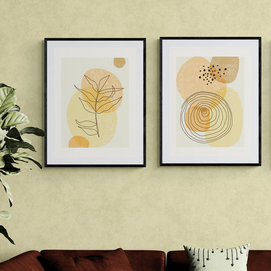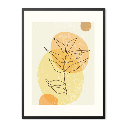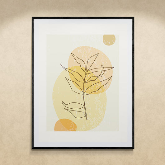 Deze ingelijste poster Kunstig Bladertak met een abstracte bladertak is een kunstzinnige verkenning van natuurlijke vormen en kleuren. De tak met bladeren wordt weergegeven in zijn essentiële vormen. Dit kunstwerk dient niet alleen als een prachtige decoratie, maar ook als een springplank voor diepere gedachten en gesprekken over de schoonheid van de natuurlijke wereld weergegeven in een abstract schilderij.