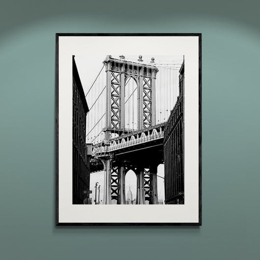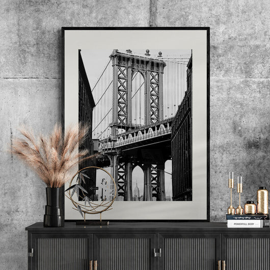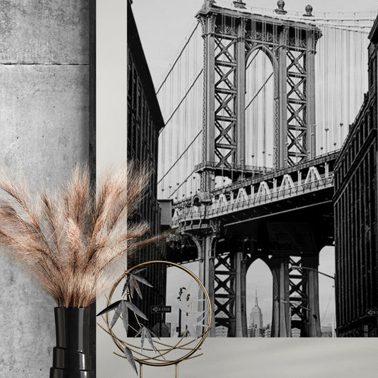 De hoeveelheid schakeringen van zwart en wit brengt elk detail tot leven, creëerde een sfeer die zowel tijdloos als hedendaags aanvoelt. Een ode aan de architectonische pracht van de stad en de verborgen hoeken van Brooklyn. Laat je inspireren door deze fascinerende blik op een van New York's meest iconische bouwwerken.