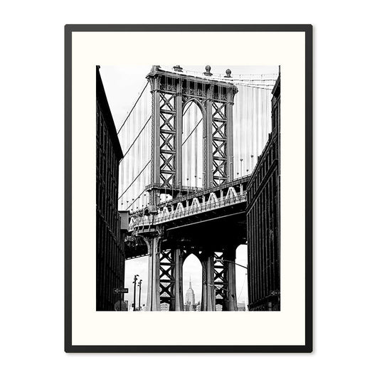 Verlies jezelf in de contouren van New York met onze poster in lijst Manhattan Bridge. Dit zwart wit beeld toont de opvallende lijnen van de Manhattan Bridge, bekeken vanuit het unieke perspectief van DUMBO in Brooklyn.