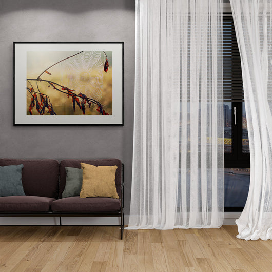 Dit kunstwerk biedt een dagelijkse herinnering aan de wonderschone patronen die de natuur ons schenkt. Het is een stukje tijdloze schoonheid voor uw interieur, perfect voor iedereen die de subtiele harmonie tussen kunst en natuur waardeert. Bestel nu Ochtenddauw op een Web en breng een rustgevende sfeer in elke kamer.