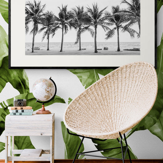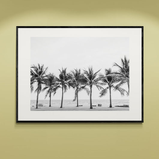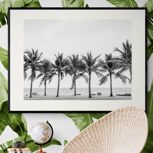 Laat de rust van de kustlijn je interieur binnendringen met onze Palmen aan de Kust poster. Deze tijdloze zwart-wit foto toont prachtige palmbomen die de kalmte van de natuur belichamen. Perfect uitgelijnd tegen een serene achtergrond, voegt deze bomen een elegantie en rust toe aan elke ruimte.