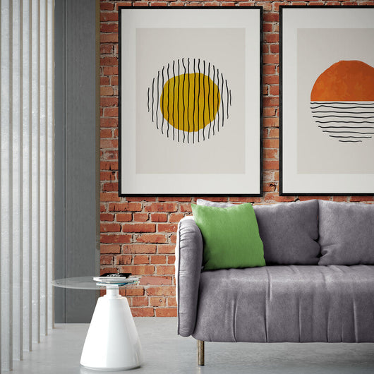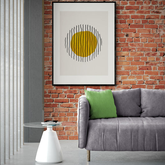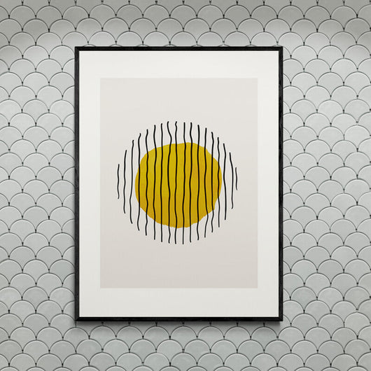 Introduceer een stralend middelpunt in uw interieur met Scribble Geel, een kunstzinnig geconstrueerde poster die een warme gloed uitstraalt, als een zon. Omlijst door een elegante lijst, toont deze afbeelding een okerkleurige cirkel, afgedekt door een dans van zwarte lijnen die een abstract, maar harmonieuze sfeer scheppen. Het levendige geel vormt een sterk contrast met de strakke zwarte krabbels, waardoor een visueel opvallende statement ontstaat.