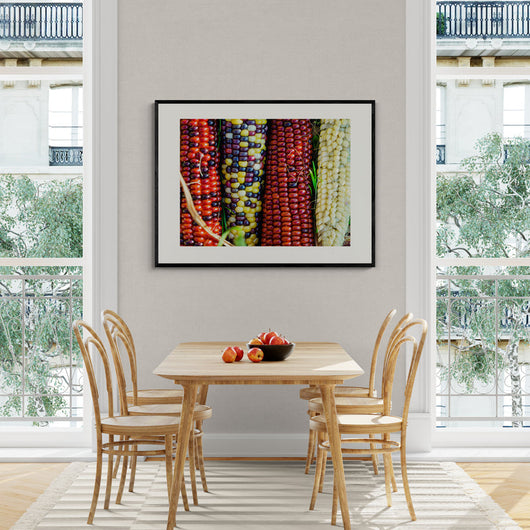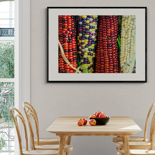 Verrijk je leefruimte met onze Poster in Lijst Siermais Regenboog. De veelkleurige korrels schitteren in harmonieuze tinten, van robijnrood tot saffierblauw. Deze ingelijste poster is niet alleen een lust voor het oog, maar ook een gespreksstarter die de diversiteit en de rijkdom van de natuurlijke wereld viert. Een subtiele, maar indrukwekkende toevoeging aan elk modern of traditioneel interieur.
