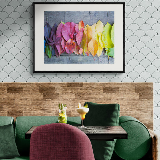 De ingelijste poster Vurige Herfst: Bladeren & Bessen in Regenboogkleuren is een prachtige samenvatting van de kleurrijke, dynamische natuur van het herfstseizoen. De diepe tinten en de speelse indeling maken dit een perfect kunstwerk voor elke ruimte die wel wat kleur kan gebruiken.