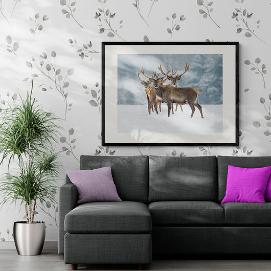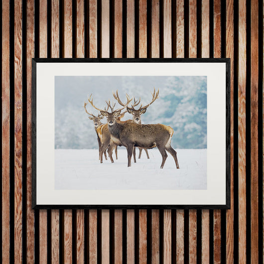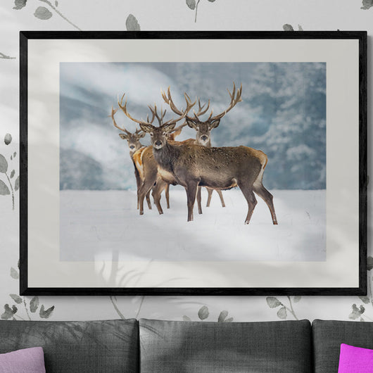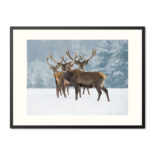 Stap in een wereld waar het majestueuze edelhert de hoofdrol speelt. In Winters Monarch rennen ze door een glinsterend sneeuwlandschap, een tafereel van pure kracht en elegantie. Elk detail, van het imposante geweien tot het fonkelen in hun ogen, belichaamt de winterse schoonheid.