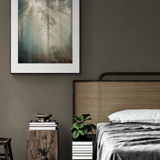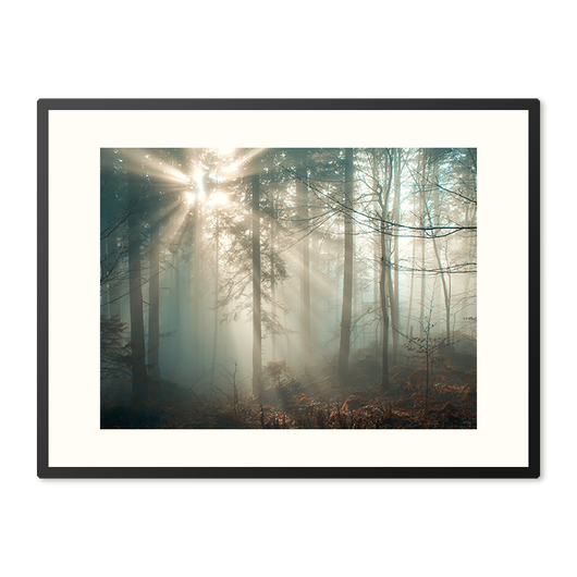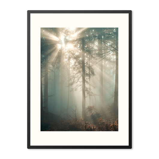 Stap binnen in de betovering van Zonnestraal in Winterwoud met deze prachtig ingelijste poster. Als de winterzon zijn eerste stralen door de bomen werpt, komt het bos tot leven in een spel van licht en schaduw. Deze poster vangt dat unieke moment, wanneer de stilte van december doorbroken wordt door een warme zonnestraal. Het is een uitnodiging voor reflectie, rust en verwondering.