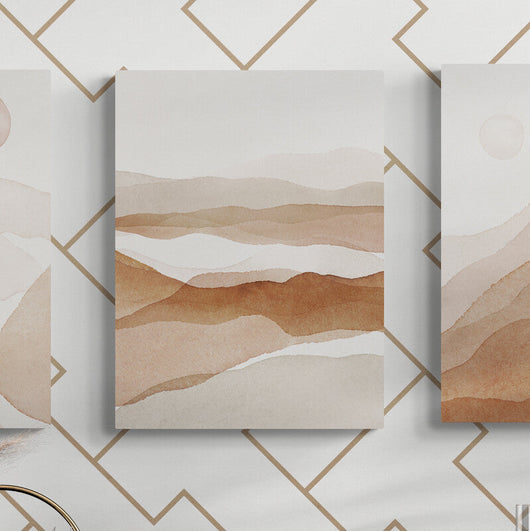 Ontdek de natuurlijke schoonheid van Abstracte Bergen deel 2, heen onderdeel van het drieluik Abstracte Bergen. Het canvas is gevuld met de rust van een uitgestrekt berglandschap, waarbij elke detail de aardse sereniteit van bruine en beige aangeeft vastlegt. De lagen vloeien samen tot een harmonieus geheel dat de essentie van de natuurlijke wereld vastlegt en de ziel tot rust brengt.