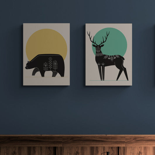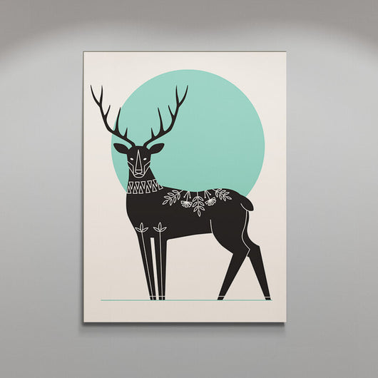Verankerd in de diepte van natuurlijke mystiek presenteert Abstract Hert Groen een schilderij waar het hert, een tijdloos symbool van elegantie en gratie, centraal staat. Tegen de zachte groene cirkel onthult het hert zijn ingewikkelde vormen en patronen, die de verbondenheid met de natuur belichamen