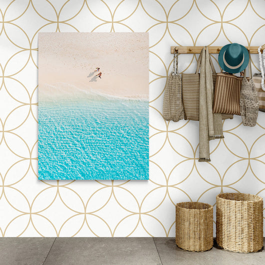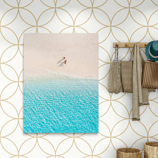 Laat je verleiden door de rust van het Aerial View schilderij. Dit stuk, dat de serene pracht van ongerepte stranden en helder water weergeeft, transformeert elke kamer in een haven van kalmte.