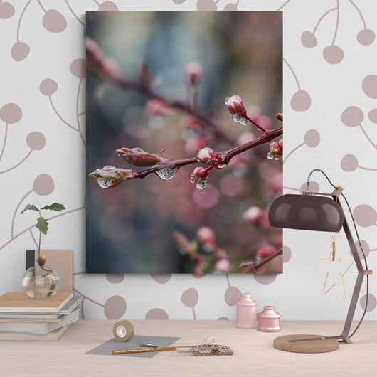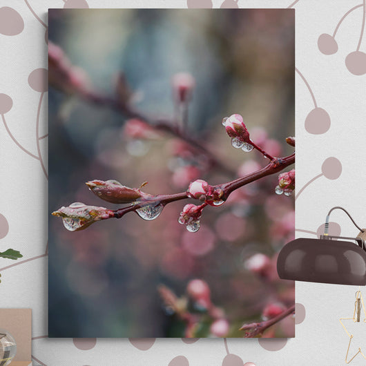 Laat je verleiden door de pure esthetiek van het voorjaar met ons schilderij Betoverende Bloeiende Perzikboom. Dit meesterwerk brengt een zeldzame, stille schoonheid in huis die elke kamer transformeert. Verse, roze knoppen van een perzikboom komen tot leven op het canvas, hun kleuren nog levendiger na een frisse regenbui. De druppels die je nog aan de delicate bloesems ziet hangen brengen het geheel tot leven.