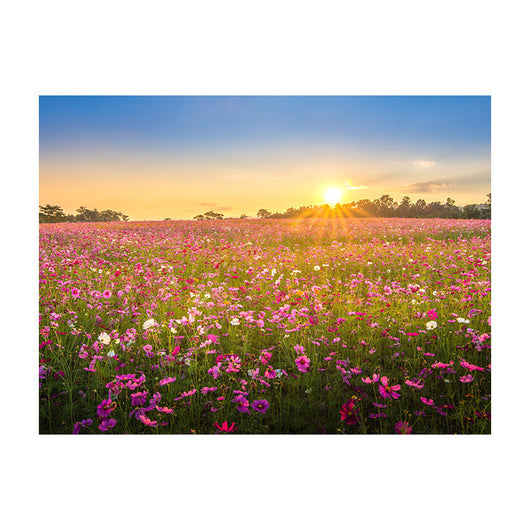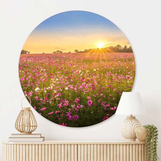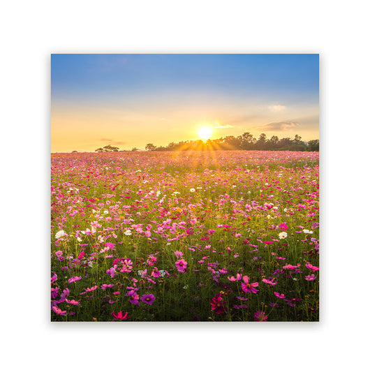 Voel de kalmte en rust elke keer als je naar dit meesterwerk kijkt. Het schilderij is een ware blikvanger in elke ruimte. Breng een stukje van de wonderlijke natuur in je huis met het Betoverende Bloemenveld bij Zonsondergang schilderij.