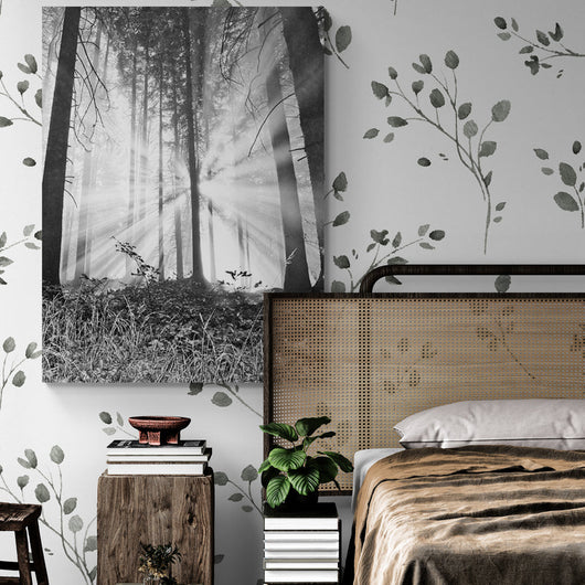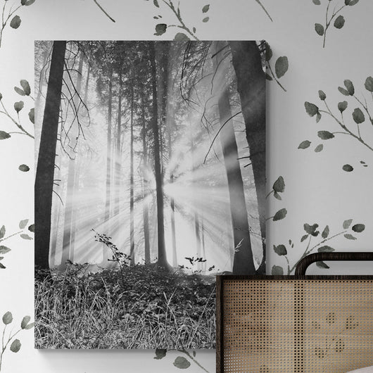 Laat je betoveren door de tijdloze elegantie van het Bosmagie bij Dageraad schilderij. Ontdek het delicate samenspel van licht en schaduw in dit betoverende boslandschap. Het diepe contrast van zwart en wit brengt de details tot leven, waardoor je het gevoel hebt dat je elk moment in deze verleidelijke omgeving kunt stappen.