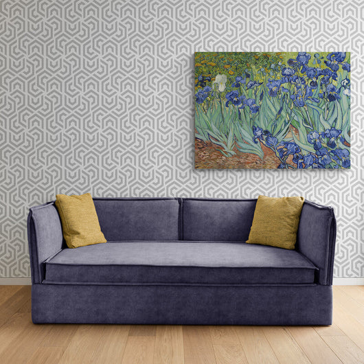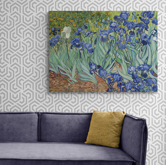 Laat u meenemen op een visuele en emotionele reis door de artistieke geest van Vincent van Gogh met dit meeslepende stilleven, Irrisen. Geschilderd tijdens zijn verblijf in Saint-Rémy, demonstreert dit werk Van Goghs onmogelijke zoektochten naar krachtige kleurcontrasten. De oorspronkelijk paarse irissen staan tegen een stralende gele achtergrond, waardoor hun decoratieve vormen een levendige uitstraling krijgen. Door de tijd heen zijn de bloemen verandert in een subtiele blauwe tint door het verbleken van het rode pigment, wat een extra dimensie van schoonheid en een rijke historische laag toegevoegd.