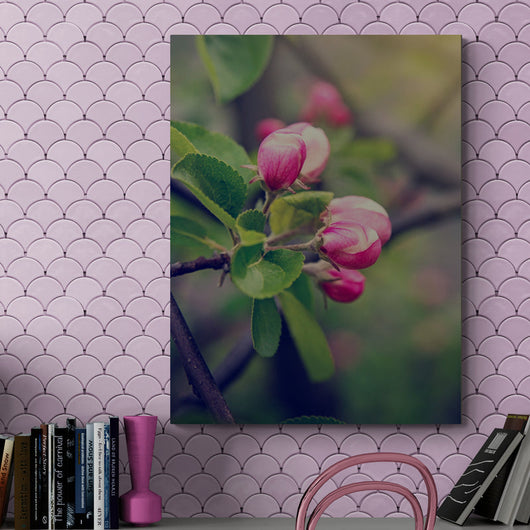 Dit schilderij, Lenteknoppen in Zacht Licht, belichaamt de essentie van de lente in al haar glorie. De drie bloemknoppen staan op het punt om te bloeien, gevoed door de warmte van het zonlicht en de liefde van Moeder Natuur. De rijke texturen en de levendige kleuren van de knoppen contrasteren mooi met het diepe groen van de bladeren, waardoor een prachtig tableau van kleur en leven ontstaat.