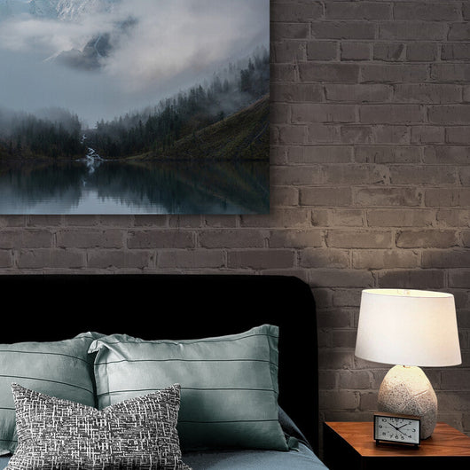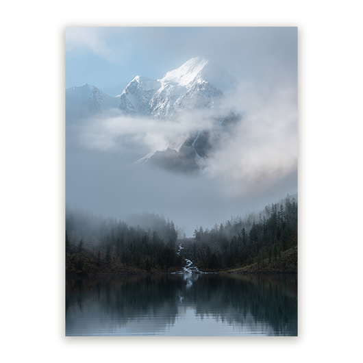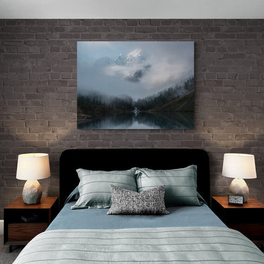 Ervaar de mysterieuze allure van de alpen met ons Mistige Bergtoppen schilderij. Dit kunstwerk vertelt het verhaal van de ochtendmist die langzaam optrekt om de pracht van de sneeuwbedekte toppen te onthullen. Het canvas komt tot leven met de stille glans van de bergen die weerspiegeld worden in het serene meer, een beeld dat zo rustgevend is als de natuur zelf.