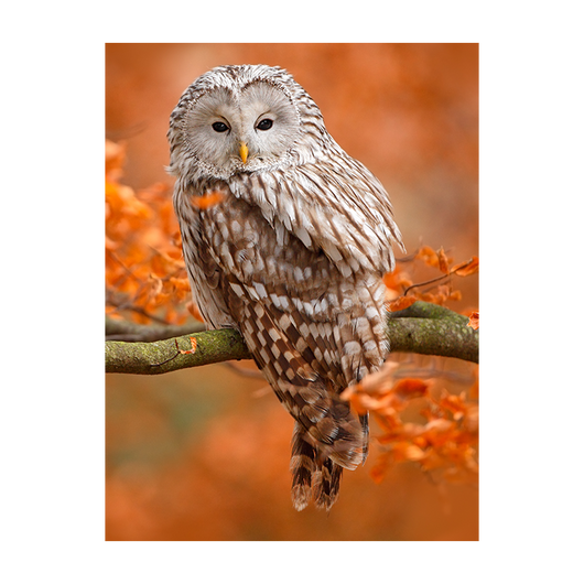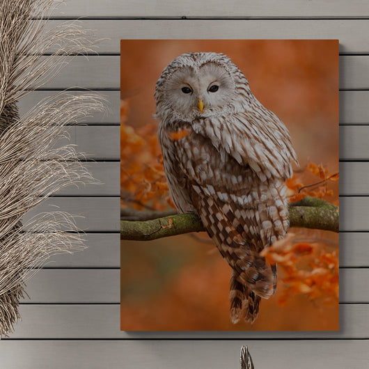 Laat je inspireren door de natuurlijke pracht van onze planeet met het schilderij Mystieke Uil. Deze kunstzinnige weergave brengt de kijker dicht bij een Oeral Uil die rustig zit te observeren vanaf een boomtak.