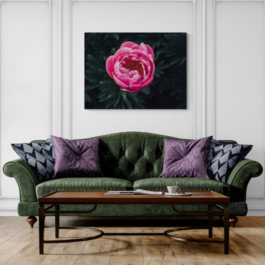 Vind de flow in de kunst van het dagelijkse leven met ons schilderij Prachtige Rose Pioenroos. Dit kunstwerk spreekt tot de ziel met zijn opvallende close-up van een rose pioenroos in volle bloei. Het rijke kleurenpalet brengen elk bloemblad tot leven, een perfect contrast tegen het diepgroene blad.