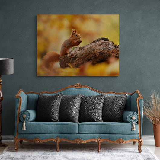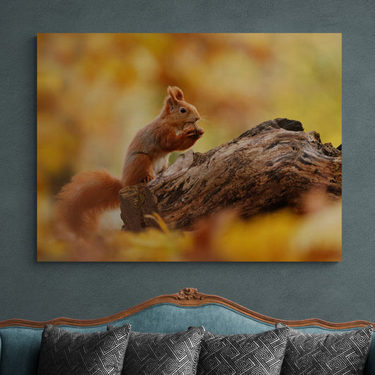 Dompel jezelf onder in de wonderen van de natuur met het schilderij Rode Eekhoorn. Dit gedetailleerde kunstwerk legt niet alleen het uiterlijk van de eekhoorn vast maar toont hem ook terwijl hij smult van een noot.
