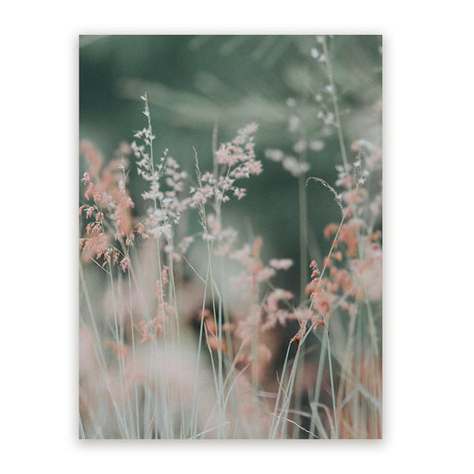 Schilderij Roze Bloemen in Grasweide