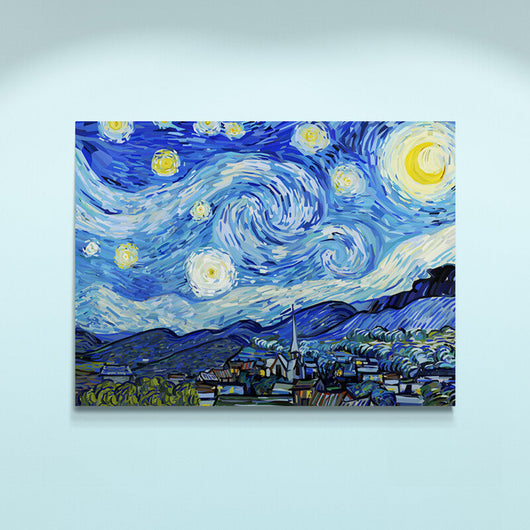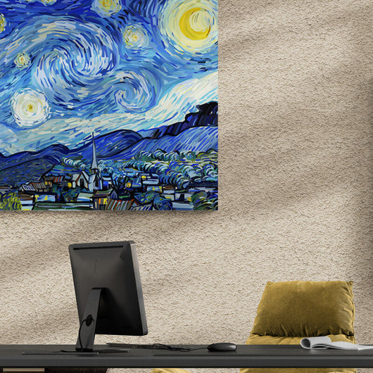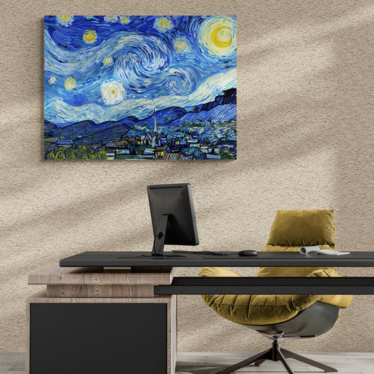 Breng een van de meest adembenemende taferelen van de nachtelijke hemel in huis met Van Gogh's Sterrennacht. Dit schilderij is een reproductie van het origineel, waarbij de onstuimige energie van de wervelende lucht en de fonkelende sterren op magistrale wijze zijn vastgelegd.