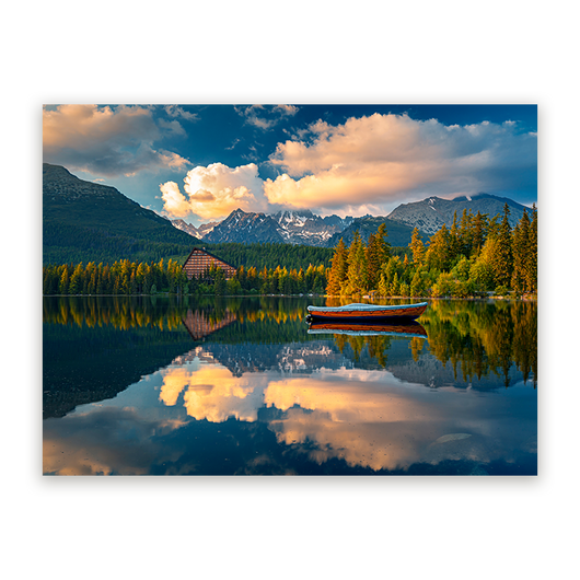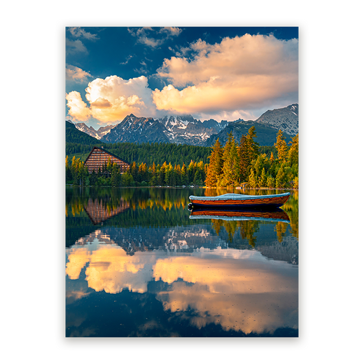 Dit schilderij is een uitnodiging om dagelijks te genieten van de stille grootsheid van de Tatra's, en biedt een permanente blik op de wonderen van de natuur. Geef je muur een verhaal met Tatra's Ochtendgloed.