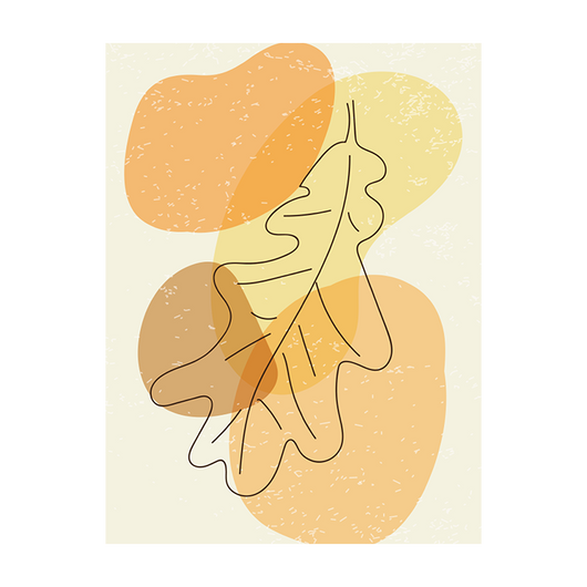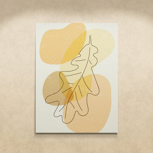 Schilderij Vallend Eikenblad transformeert het alledaagse eikenblad tot een perfect stuk moderne kunst. Door gebruik te maken van de kleuren beige, oranje en geel,  biedt het kunstwerk een uitdagende en boeiende kijk op de natuur.