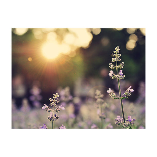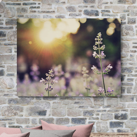 Ervaar het rustgevende effect van de natuur in volle bloei met ons Veld van Lavendelbloemen schilderij. De rijke paarse tinten van de lavendel, ondergedompeld in het stralende licht van de zonsondergang, brengen een gevoel van kalmte en inspiratie.
