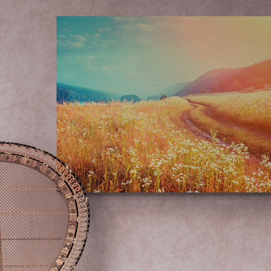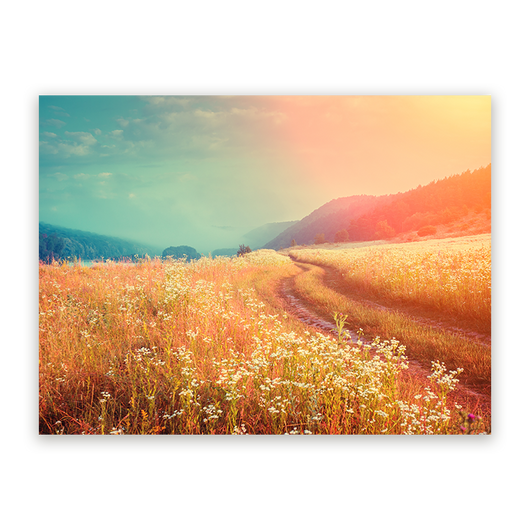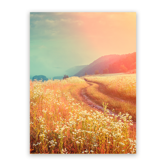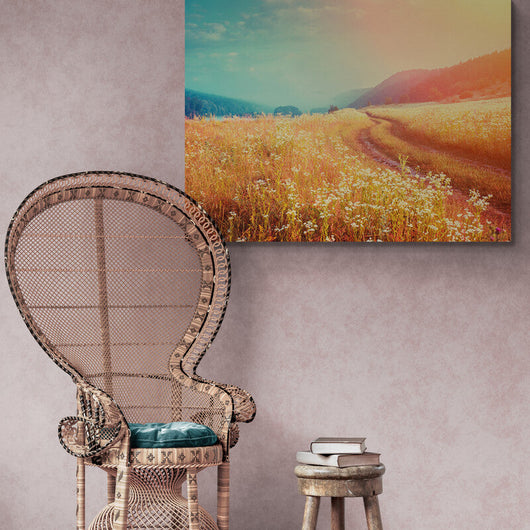 Duik dieper in de schilderachtige pracht van uitgestrekte velden onder het gouden licht met ons schilderij Weidse Zonnegloed. Dit kunstwerk legt elke nuance van de zonsopkomst vast waardoor de weelderige groene velden schijnen en sprankelen. Hierdoor ontstaat een gevoel van kalmte en harmonie.