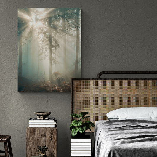Laat je betoveren door de rustige momenten van de winter met ons Zonnestraal in het Winterwoud schilderij. De zachte stralen van de ochtendzon die door het dichte woud breken en het bevroren landschap verwarmen, worden meesterlijk vastgelegd in dit kunstwerk. De subtiele lichtreflecties en de nevelige atmosfeer voeren je mee naar een serene plek ver weg van de dagelijkse drukte.