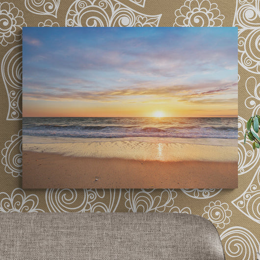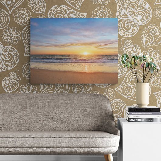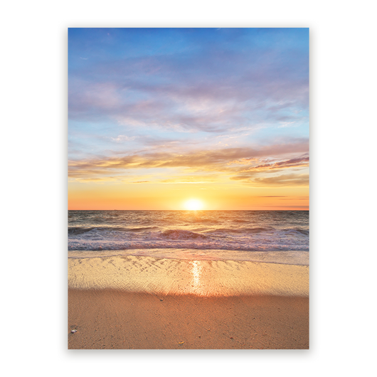 Dompel jezelf onder in de serene schoonheid van de natuur met onze Zonsondergang schilderij. De levendige kleuren en delicate details zorgen voor de magie van een strandzonsondergang tot leven, direct op je muur. Elk detail, van de glinsterende golven tot de zachte reflecties in het natte zand, laat je wegdromen.