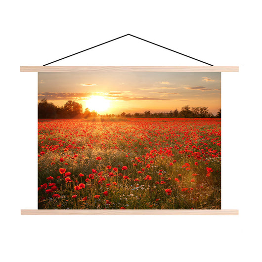 Textielposter Zonsondergang over Klaprozenveld